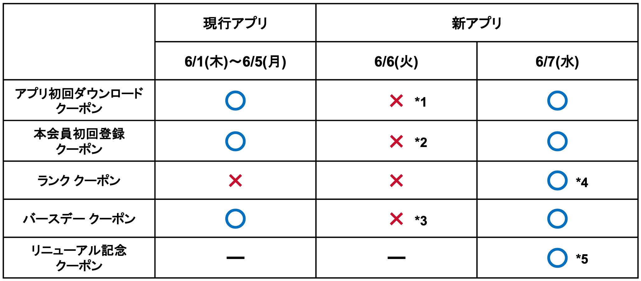 ●新アプリ運用開始*・・・・・・2023年6月6日(火) 営業開始から