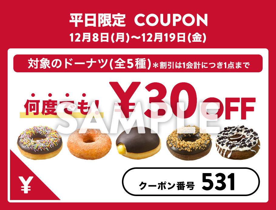 平日限定で人気のレギュラー商品がお得になるクーポンを