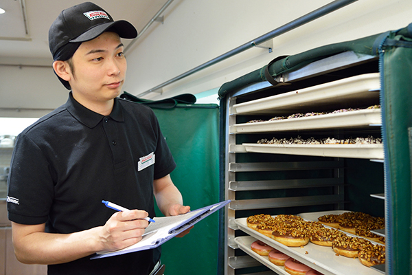 店舗でクルーのシフトや人材配置、ドーナツの製造(受発注)管理などのオペレーションを覚えます。